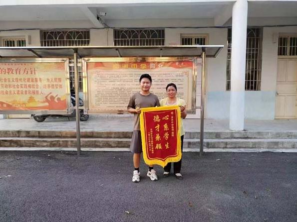 一喜: 9月10日,该校新任班主任戴佼老师喜获学生家长赠送的一面大锦旗,成为该校教师节日的头等新闻。事情原来是这样的:日前,戴老师班上一名学生的手被钉子划破,血流不止,戴老师先用自己的医疗药箱给学生止了血,然后立即送往医院打了破伤风针再通知家长。但是连续几天在学校寄宿,还是出现了低烧症状。戴老师一面让学生休息好,一面在饮食方面让学生吃得清淡一些。同时多次开车送学生到医院诊治,经过近20天的治疗,终于使学生得以康复。学生家长深受感动,特意制作了一面“心系学生,德才兼顾”的锦旗表示感谢。