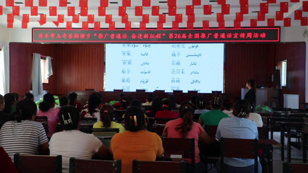 每年9月第三周为全国推广普通话宣传周,今年第26届推普周的主题为“推广普通话 奋进新征程”。为全面做好推普工作,9月12日,新疆库车市玉奇吾斯塘乡举办“一起来学普通话”推广宣传活动。