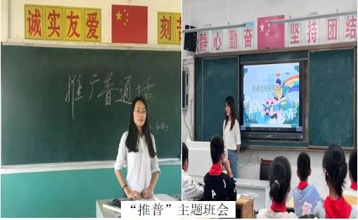 该校利用电子屏滚动播放“普通话诵百年伟业,规范字写时代新篇”的宣传标语。升旗仪式上向师生发出推普活动倡议,倡议学生将普通话作为生活中的用语,并以学校带动家庭,以家庭带动社会。各班开展推普周班会,提高学生对普通话的进一步认识。利用校园广播,黑板报、手抄报等平台努力创造宣传氛围,扩大宣传影响,共同营造学好普通话,讲好普通话,用好普通话的良好语言环境。组织学生在校外化身“啄木鸟”,“纠错改错”行动。