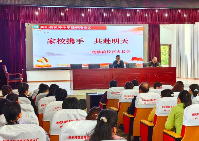 继9月初组织新一届家长委员会会议暨校园开放日活动之后,10月13日,湖北省英山县长冲中学杨柳湾校区,召开以“家校携手,共赴明天”为主题的家长会,就进一步加强和完善家校社协同育人机制、加强“五项管理”、落实“双减”政策、强化安全管理、提升教育教学质量、完善食堂管理、预防秋冬季传染病等方面实现家校社共商共建。
