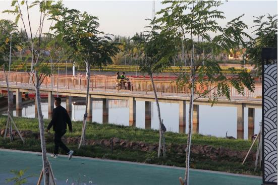 “原来出门就是戈壁滩,如今有了人工湖,有了花草树木,我们的家就在公园里、文化园里。我在家门口也有了工作。”清晨,打扫好湖岸卫生的村民热孜完古丽·艾拜开心地说。