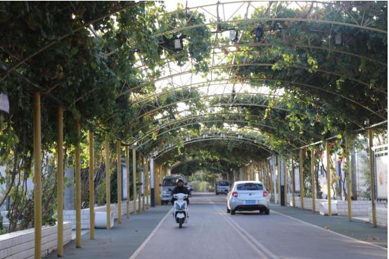 时至深秋,新疆库车市乌恰镇甬库振兴村园林绿地花木依然繁盛,明湖水碧波盈盈,柏油路宽敞整洁,葡萄长廊两侧民居一色白墙黛瓦。环明湖水系,文化礼堂、研学中心、风格民宿区、非遗手工艺展销区等文旅设施布局有致,一步一景,皆在画中。
