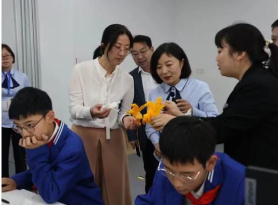 新鄂交流话教育,千里相知促发展。观摩人员一行兴致勃勃地参观了学校美丽壮观的教学楼、设备齐全的功能馆室,并观摩了学校特色VR课程以及海洋科考、创意智造、机器人、3D打印、火星绿州等社团课程。新疆博州精河县教育代表团一行对学校各类特色课程表示高度认可。
