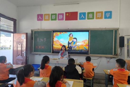 学校举行了以“倡树敬老新风,弘扬敬老美德”主题的国旗下讲话。并布置“给爷爷奶奶奉一盏热茶,暖一次被窝,舒一次经骨……”的课后活动。