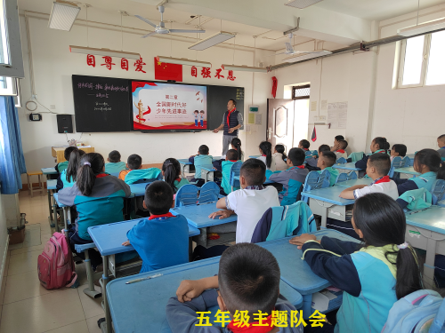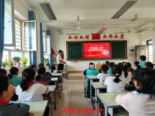 队会课上,1-3年级中队辅导员以少先队建队日为切入点,通过致敬红领巾、珍爱红领巾、添彩红领巾等环节,逐步引导小队员们认识红领巾,了解自己的责任,努力为红领巾增光添彩。4-6年级各中队齐唱队歌、重温入队誓言,以此来向红领巾致敬,表达浓浓的爱国情。7-8年级中队辅导员组织队员们学习了红领巾的来历和少先队历史,引导队员们牢记习爷爷教导,树立自信,练好本领。