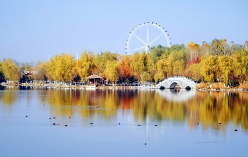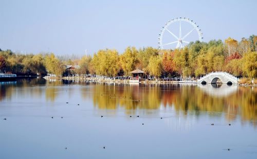 2023年11月16日,一群野生候鸟在新疆阿克苏地区阿克苏市多浪河景区的锦绣公园水域上觅食、栖息。近年来,随着新疆阿克苏地区生态环境的不断优化,吸引了越来越多野生候鸟在公园、湿地栖息,形成一幅独特的生态美景。(阿瓦提县委组织部:包良廷)