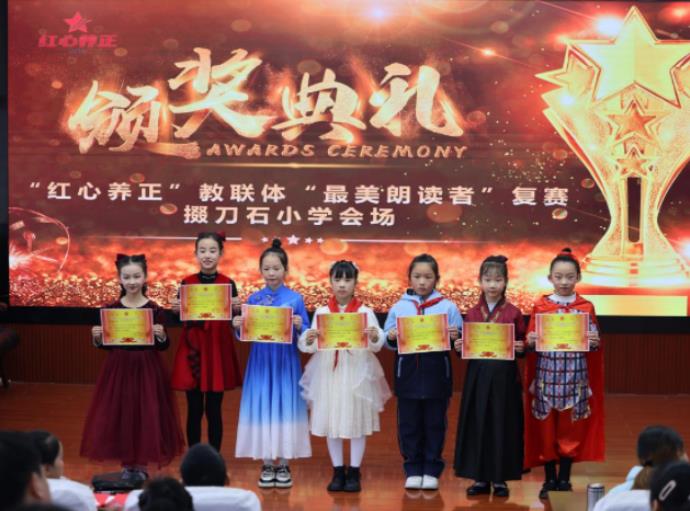 精选篇目,精心编排,精彩诵读,小小朗读者们为全校师生呈现了一场鼓舞人心的视听盛会。选手把对作品的理解,通过真挚细腻的情感、抑扬顿挫的语调和生动的神态、动作融入诗文中,让观众仿佛听到了作者的心声,真正达到了读者与作者的情感交融。经过激烈角逐,各年级段评选出了一、二等奖。校委会领导为孩子们颁发了奖状,孩子们脸上洋溢着获胜后的喜悦和自信。