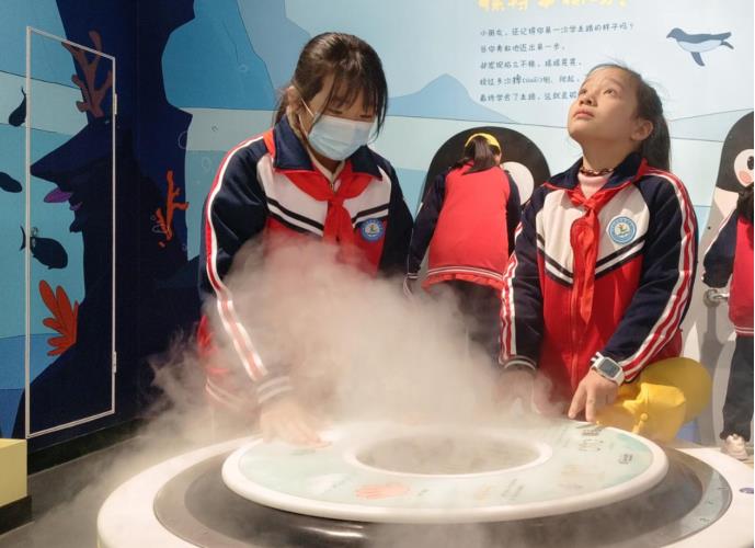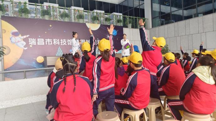 抵达瑞昌市科技馆后,学生们有序排队入馆。科技馆中琳琅满目的展品和体验设施让孩子们大开眼界,他们好奇与期待的目光在展品上流连。孩子们随着讲解员的步伐走入潘际銮院士科技展厅、儿童科学乐园展厅、科学探秘展厅,在各个展厅内,他们看得认真、听得专注,且争先恐后地体验。通过“沉浸式”“互动式”的参观模式,学生近距离感触到了科学的力量,切切实实感受到了科技的魅力。