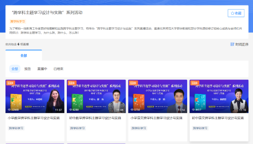首先,依托研直播平台的“跨学科主题学习设计与实施”资源,各学科教师打破学科壁垒,分组观看小学语文、初中语文、小学数学、初中数学这四个专家培训讲座。