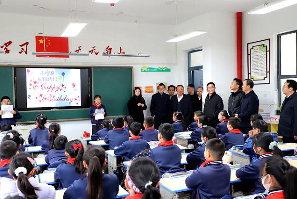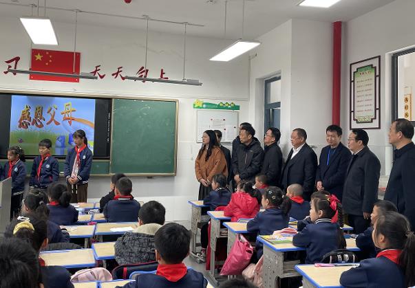 11月29日上午,湖北荆门市沙洋县人大代表重点建议及政府工作报告重点工作完成情况视察活动,进入沙洋县汉上实验学校,该校以“关爱留守儿童 办有温度的教育”为主题答卷迎接县人大代表视察。