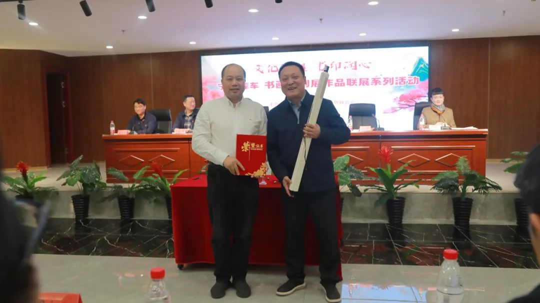 活动当天,来自浙江的宁波艺术家在库车开展了“文化润疆 书印润心”书法讲座,讲座内容博古论今、深入浅出、干货满满,将学术研究化为生动、轻松的品鉴,令参会人员受益匪浅。随后,甬库两地的艺术家和文艺爱好者一起现场挥毫泼墨,用书画深入交流,用笔墨歌颂新时代,用丹青描绘新气象,用作品互相交流。