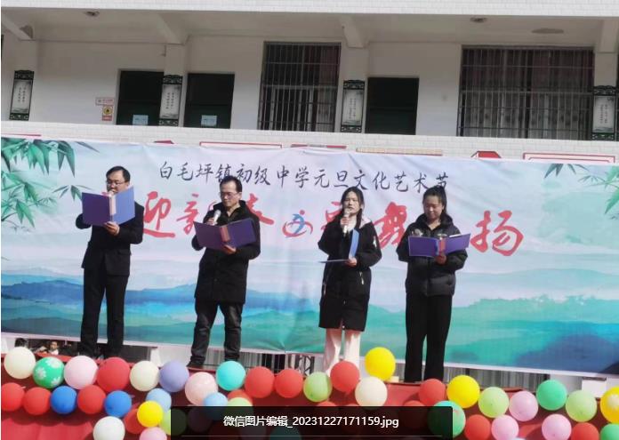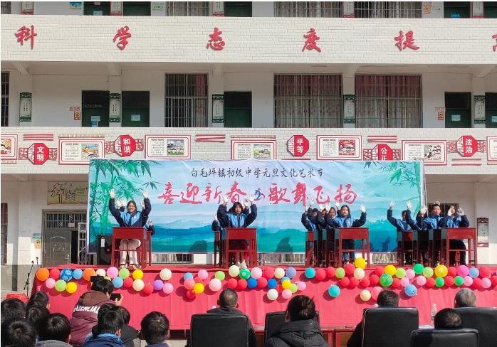 歌舞飞扬人人展笑颜,欢声笑语祝福迎新年。12月27日,城步县白毛坪镇党委书记吴旭华、副镇长杨佳梁、督学区主任陈岩青等与白毛坪镇初级中学全体师生和部分家长欢聚一堂,共同观看白毛坪镇初级中学2024年元旦文艺汇演视觉盛宴。