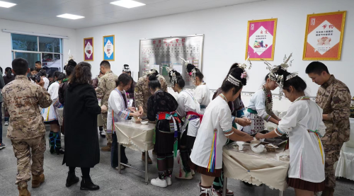 最后,“春蕾女童”与官兵一起包饺子,一起唱侗族大歌《天星明月》《欢迎你到侗寨来》,一阵阵欢声笑语在营区中响起,搭起了军民之间“连心桥”。