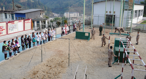 活动中,春蕾女童们在武警官兵的带领下,先后参观了中队荣誉室和荣誉墙,听着官兵讲述峥嵘岁月里的红色故事,领略中队官兵们英勇顽强、屡创佳绩的光荣历程。随后,观看了战士们的擒拿术、翻越400米障碍等训练表演,整齐划一的队列和勇于拼搏的精神,让她们感受到了军人的风采与豪情。此外,武警官兵向侗族女童讲授国防知识和传授一些基本的军事技能,零距离接受了国防教育。