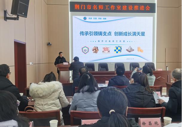 近日,湖北荆门市名师工作室推进会在市教育局成功举办,荆门市掇刀区周齐才名师工作室主持人、石化第一小学副书记周齐才应邀在会上进行了经验分享,受到了与会领导及同仁的一致好评。市教师发展中心分管负责人及相关科室负责人,各县市区教育局教师管理科(股)负责人、教师发展中心主要负责人,省、市级名师工作室所在学校主要负责人、主持人、核心成员共83人参加了会议。