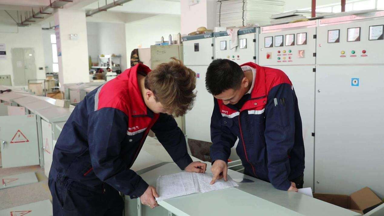 新疆浙开电气设备有限公司成套车间四组组长任乐乐说:“木沙江来厂里也有五年了,学技术学的比较快,现在已经是师傅,开始带徒弟了,教徒弟做排、做线,认识图纸,在厂里的表现也非常的好。”