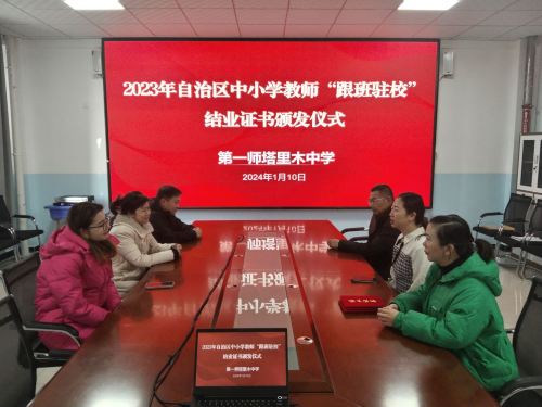 2024年1月10日,第一师塔里木中学举行2023年自治区中小学教师“跟班驻校”结业证书颁发仪式。学校书记刘智瑜、副校长杨永生、教研室主任周美菊出席会议,全体跟班驻校教师参加。