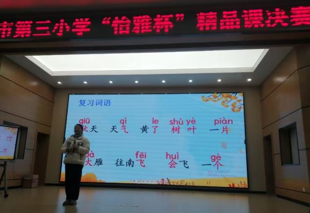 在三小校区报告厅,语文组决赛9位优秀教师带来的精品课《口语交际:安慰》、《慈母情深》、《难忘的泼水节》、《搭船的鸟》、《盼》、《秋天》、《大小多少》、《桥》和《书戴嵩画牛》,参赛教师课程设计新颖,比赛精彩纷呈,展示了教师良好的个人素养和教科研能力。