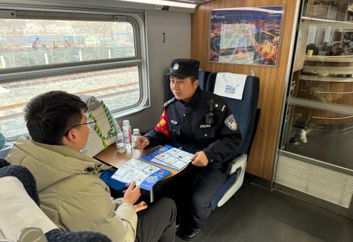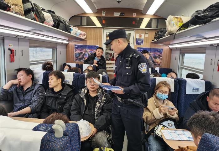 春运首日,西安铁路公安局延安公安处乘警支队组织各值乘列车开展便民服务5场次,法制安全宣传8场次,累计做好人好事50余件,为旅客平安出行增添了一份保障。(通讯员:蔡晓晴)