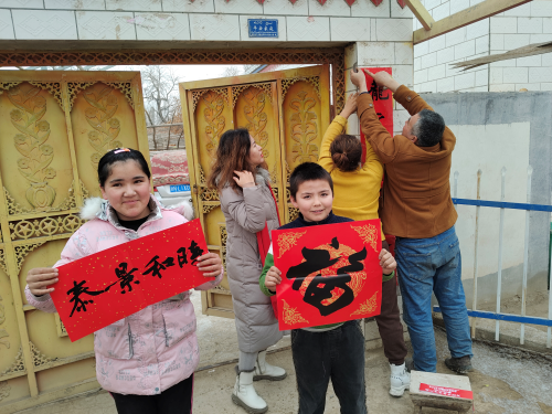 驻村工作队员和村干部挨家挨户为村民送春联,将一幅幅寓意喜庆、饱含祝福的春联送至村民手中,和村民一起贴春联、福字,给村民们讲解春联中赋予的美好寓意,营造了中华民族传统节日浓厚氛围。同时详细了解他们的健康状况、家庭和生活情况,倾听他们的诉求和愿望,叮嘱他们春节期间尤其要注意用电、用气、用火安全,让他们感受到节日的温暖和浓浓的关怀。