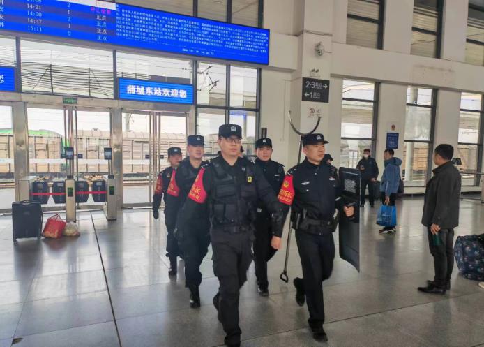 新春佳节即将结束,旅客纷纷踏上返程旅途,铁路客流呈现高峰状态,西安铁路公安局延安公安处蒲城东站派出所全体干部民警、辅警始终坚守岗位、保持高昂的工作状态,全力以赴维护好站车治安秩序,提高旅客出行的幸福感及满意度。