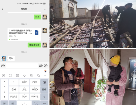 吐木秀克村“两委”干部、驻村工作队员、各小队网格长通过入户走访、微信群、公众号等多种方式进行宣传,统筹安排应对大风寒潮天气工作,将最新天气变化和防范应对知识告知群众,确保人人知道防寒潮措施。同时了解他们当前生产生活情况,重点关注房屋是否稳固、取暖设施是否完善、过冬棉衣棉被、食物等物资储备是否充足,并帮助村民加固牛舍羊舍,确保安全度过大风寒潮天气。坚决执行24小时值班值守制度,密切关注天气变化,及时了解天气情况,确保一旦出现灾情时,能以最快行动、最大程度保障群众生命财产安全。