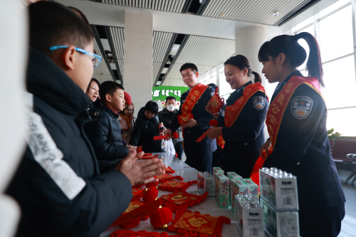 “两根青竹节节高,后面挂着大元宵——打一电话号码?”“110!”在猜灯谜环节,旅客们热情高涨、积极参与,民警将报警电话、安全提示等常识融入其中,为猜对灯谜的旅客送上精美的礼品。在活动最后,民警用好记易懂的反诈顺口溜向大家开展反诈宣传,提醒旅客注意出行安全。