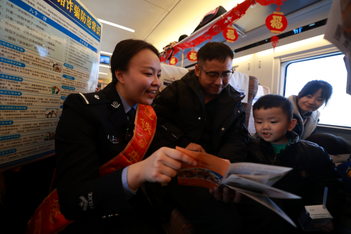 在包头站,民警设立宣讲台,摆放具有元宵特色的宣传品和小礼物,让往来旅客在竞猜灯谜、你问我答等活动中了解反诈、反扒等出行常识。