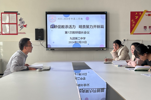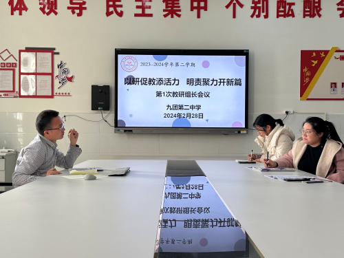 深耕教研路,砥砺共前行。为切实贯彻新课标的教育理念,更好地发挥教研组长在教育教学中的引领作用,九团第二中学于2月27日召开了2023-2024学年度第二学期的教研工作会议,本次会议以“以研促教添活力,明责聚力开新篇”为主题,由教研室主任王建担任主持工作,全体教研组长参加会议。