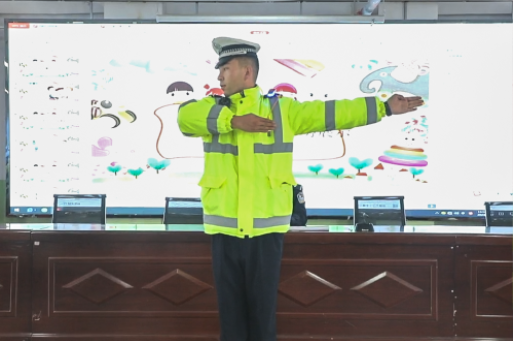 课后,交警们现场为学生们展示了交通指挥操,又开启了“法律知识小竞赛”,学生们争先恐后举手作答,现场气氛活跃,师生们情绪高涨,民警们在趣味的活动中教育学生们自觉学法守法、懂法用法,帮助学生们构筑自我保护的“防火墙”,为师生们带来了一堂别开生面的法治教育第一课。