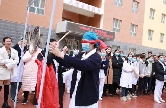 阳春三月,春意盎然。为庆祝第114个“三八”国际妇女节,丰富医院职工业余生活,促进职工身心健康发展。3月6日下午,第一师医院工会、妇委会组织医共体总院及分院广大医护人员,在大学生公寓楼前开展主题为“巾帼绽芳华 筑梦新时代 ”的庆“三八”国际妇女节趣味运动会。