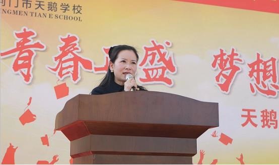 三载奉献信心满 ,四季陪伴情谊长。教师代表钱瑞玲老师向中考学子送上了最诚挚的祝福,她相信奇迹由强者创造。面对中考,全体毕业班老师信心满满,干劲十足,方法科学,合作有力。她深情地提出五点建议:一要志存高远,相信自己;二要挖掘潜能,挑战自我;三要持之以恒,脚踏实地;四要注重方法,讲求效率;五要相信老师,抛弃盲目。