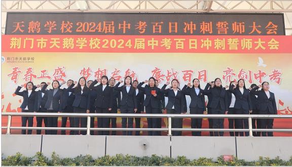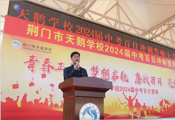 美丽的花季 我们一起拼。多少努力与汗水,多少执着与迷惘。多少泪水与欢笑,多少困惑与顿悟。将永远珍藏在青春的书页里,给岁月以梦想,给时光以生命,把握现在,赢得未来 。春风轻拂,阳光正好。3月11日,湖北荆门市天鹅学校在运动场上隆重举行2024届中考百日誓师大会。呐喊声声,誓言铮铮,八年级和九年级全体师生隆重集会,强劲地吹响冲刺中考的胜利号角,鼓舞师生备战中考的斗志。