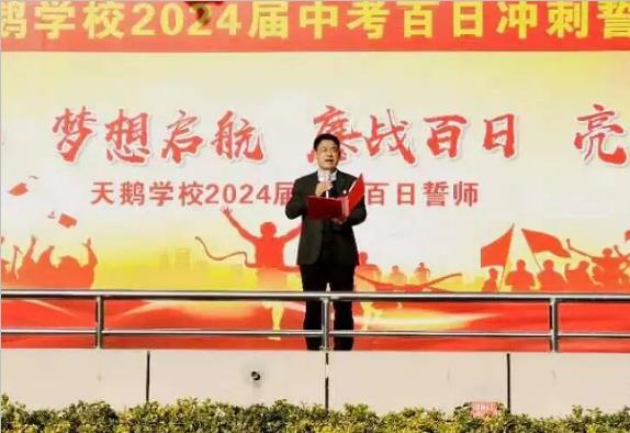 树立信心乐奉献 ,强力合作求卓越。刘娟老师带领全体教师庄严宣誓,我们以教师的责任郑重承诺:扎实上好每一节课,认真批改每一次作业,耐心辅导好每一个学生。我们以父母的期盼竭诚尽力:发现你们的疑惑,洞察你们的思想,助力你们登上梦想的殿堂。让我们携手并肩,铸就天鹅中考辉煌,共同擘画人生新篇章。