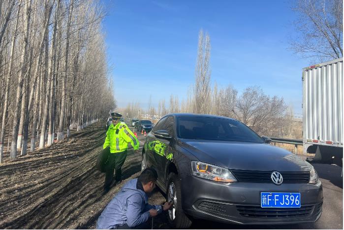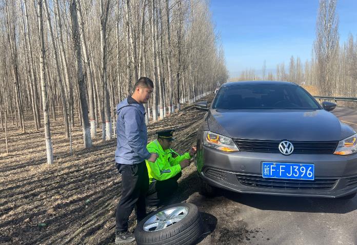 当天上午12时25分左右,特克斯执法大队执法人员在国道578线K163+600米处发现一辆灰色小型轿车打着危险报警闪光灯停在路边,称其从伊宁市返家途中车辆右前轮胎突然爆胎,由于不会拆卸且没有更换备胎的经验,所以只能暂时停靠在路边等待救援。了解情况后,执法人员立即取出随车携带工具,快速帮群众更换好轮胎,并不时为驾驶员讲解更换轮胎的方法以及需要注意的事项。十多分钟后,备胎更换完成,驾乘人员对执法人员的热心帮助连声道谢。