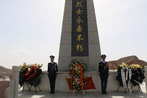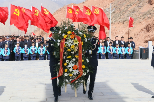 大家来到阿克苏地区温宿县爱国主义教育基地,所有人在纪念碑前肃立,手持表达思念的白色菊花,在军乐团的指挥下奏唱中华人民共和国国歌,随后礼兵向烈士们敬献花圈,全体人员向烈士纪念碑鞠躬默哀,瞻仰革命烈士纪念碑,大家怀着无比悲痛的心情依次慢步来到纪念碑前有序为英勇牺牲的烈士们献上菊花,向为边疆社会稳定和长治久安而英勇献身的英雄烈士表达无限地敬意与哀思。