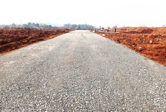 项目施工前期为方便材料进场需要硬化临时道路,中建一局项目团队贯彻绿色发展理念,采用“永临结合”优化做法,结合原市政道路做法,优化临时道路基础,在满足道路通行结构要求的前提下,保留“200厚碎石+200厚砼垫层”作为基础,缩短了项目工期,节省了临时道路后期拆除的费用,减少了过程垃圾以及扬尘的产生。