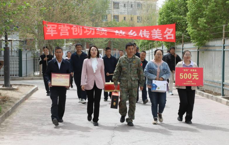 4月19日,新疆生产建设兵团第一师二团组织慰问组敲锣打鼓,将两名现役军人立功受奖喜报送到其家人手中,感谢他们为国家、为部队培养了优秀的军人,为团镇赢得了荣誉,营造关心国防、热爱国防、建设国防、保卫国防的浓厚氛围。