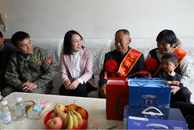 每到一家受奖军人家中,慰问组人员为军人家属披上绶带、戴上红花、送上喜报、慰问金和慰问品,家属接过满载着荣誉的喜报,喜悦与自豪之情溢于言表。慰问组与军人家属围坐在一起亲切交谈,送祝福、拉家常、话未来,详细了解军人家属的工作、生活、身体等情况。希望军人家属一如既往地鼓励孩子在保家卫国的神圣岗位上,不忘初心、锤炼意志、增强本领,争取以更好的成绩和更优异的表现为国防事业作贡献,为家乡增光添彩。