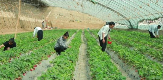 走进库车市比西巴格乡其乃巴格村的草莓大棚,棚内整齐成排的草莓长势喜人,一颗颗硕大饱满的草莓果实像是成簇的大红灯笼,沉甸甸的悬挂于绿叶之间;果实鲜红、口感酸甜的巧克力草莓、奶油草莓吸引着众多游客假期采摘前来采摘、游玩打卡。