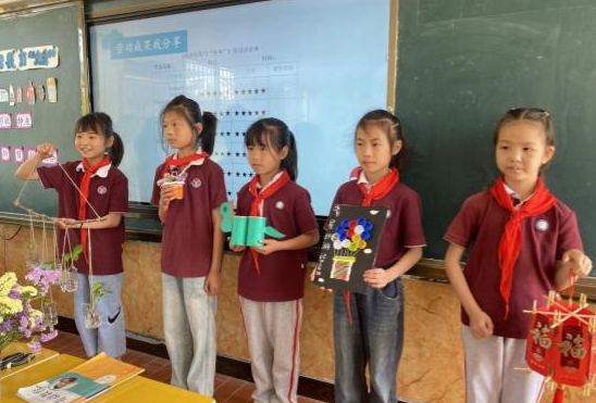 活动中,丁庄小学刘欢老师执教劳动课《废旧物品巧变身》,在同学们的一双双巧手下,废旧物品变成了花篮、笔筒、灯笼、风铃等手工制品,充分展现了孩子们的智慧和创造力。