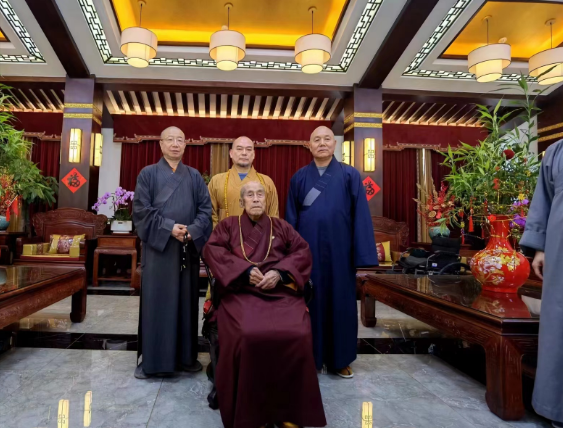 2024年4月25日,怀梵大和尚与江西妙安大和尚、内蒙古澄还大和尚、浙江传喜大和尚奔赴数千里,参访辽宁营口楞严寺圆山长老,接圆山长老之天台法脉,誓弘“天台宗"之正法。
