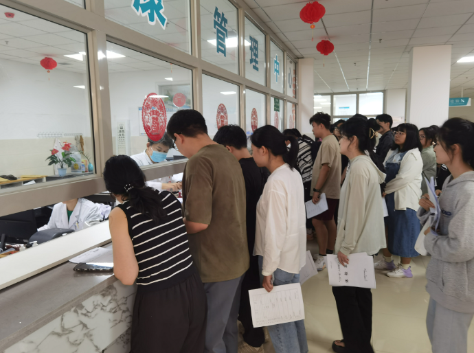 早晨9点多钟,医院健康管理中心前人山人海,医护人员严格按照“三支一扶”健康体检要求,严把健康体检质量关。在医院工作人员的引导下,各项健康体检工作井然有序,由具有副高职称的副院长邓峰和医院健康管理中心李文军主任负责每个学生的心肺听诊,其他体检项目由医疗技术骨干负责完成,他们对每个学生的体检非常认真细致,对体检结果进行详细记录,让新招募的“三支一扶”的大学生们真正享受到便捷、及时、优质的医疗卫生服务。