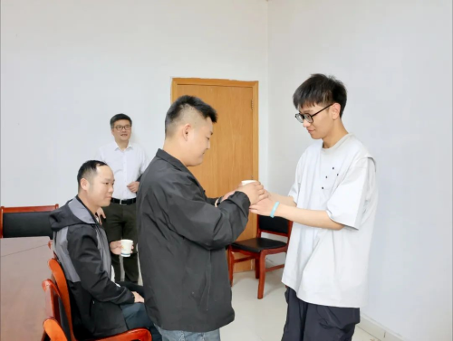 随后,在江西建工安装领导、相关部门和项目部人员的共同见证下,拜师仪式正式开始。师徒双方签订了《师带徒协议书》,徒弟向师傅鞠躬敬茶表示由衷的敬意。