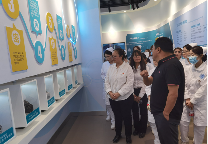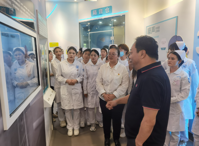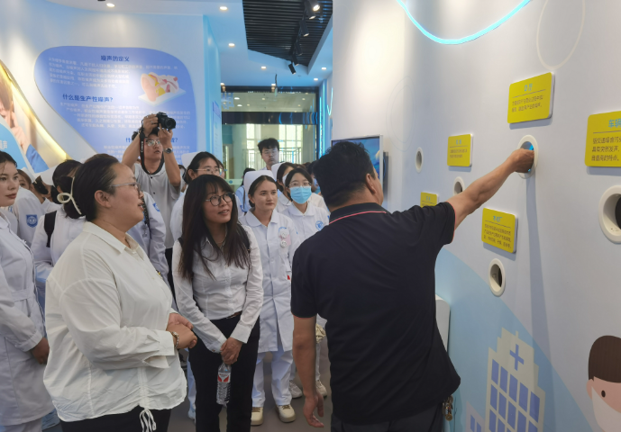 期间,在医院领导的陪同下,阿拉尔市塔里木职业技术学院教育健康学院领导与学生代表参观了兵团南疆职业病防治院职业健康体验馆。