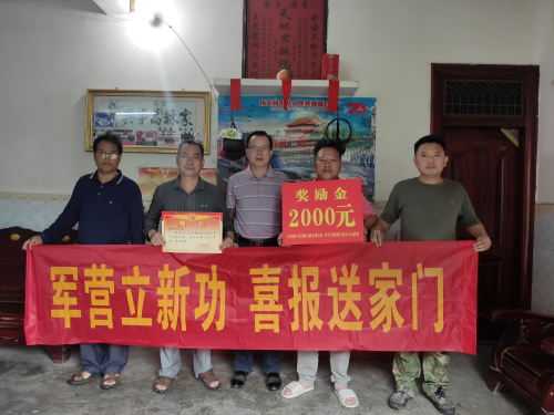 为弘扬拥军优属光荣传统,营造关爱功臣模范的社会氛围。5月15日,环江毛南族自治县退役军人事务局负责人带队到下南乡荣立三等功和“四有优秀士兵”的现役军人家中,将立功喜报和奖励金送到军人家属手中,让军属共享这份荣耀和喜悦。