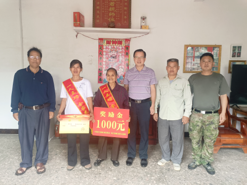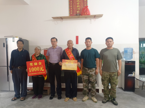 在功臣家中,工作人员为立功军人家属佩戴“一人立功、全家光荣”的红绥带,送上奖励金。退役局领导与军人家属亲切交谈,详细了解军属身体状况和家庭生活情况,并对家属为部队培养出优秀人才、为环江带来荣誉致以衷心的感谢,希望他们鼓励孩子继续扎根军营,再立新功。