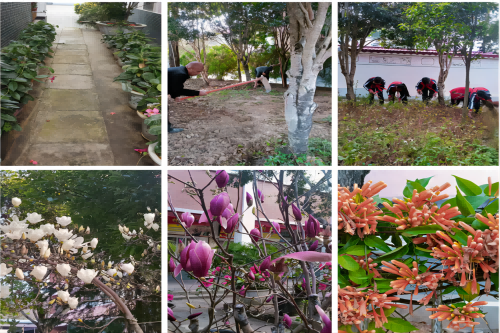 常言道“三分种植,七分管护”。有的学校绿化校园一阵风,栽了大量花木,而随着时间的推移,成活、长大的寥寥无几,甚至杂草丛生。因此,呵护花木比种植更为重要。我校每一位教师有主人翁意识,特别是学校领导层率先垂范。在余暇时间,悉心观察每一株花木,哪一株需要浇水,就浇一浇;哪一株营养不良,就施施肥;哪一株生病了,就洒洒药。学生分责任区进行管护,正如老舍先生说的“有喜有忧,有笑有泪,有花有果,有香有色。既须劳动,又长见识。”呵护花木奉献的是爱心,考验的是责任心。这项活动既能锻炼师生的劳动技能,更能让师生体会劳动的快乐,同时享受劳动美。