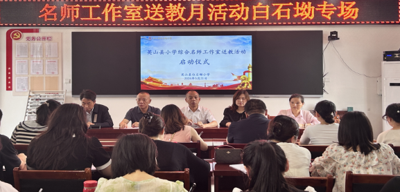 为充分发挥名师工作室的示范、引领、辐射作用,共同探讨新课程标准下体育、音乐、美术课堂教学水平提升的有效途径。2023年5月21日,由英山县教育局教师管理股主办的英山县名师工作室送教月活动白石坳专场在白石坳小学启航校区举行,活动以启动仪式、专题讲座、课例展示为主。