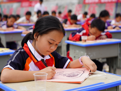当日,雍里小学校园内彩旗飘扬,气氛热烈。来自雍里小学美术班、大塘小学美术班、丙妹镇中心小学以及城关四小的参赛学生们近50位参赛学生,用他们手中的画笔,在画纸上尽情挥洒,描绘出一幅幅充满童真与创意的作品。